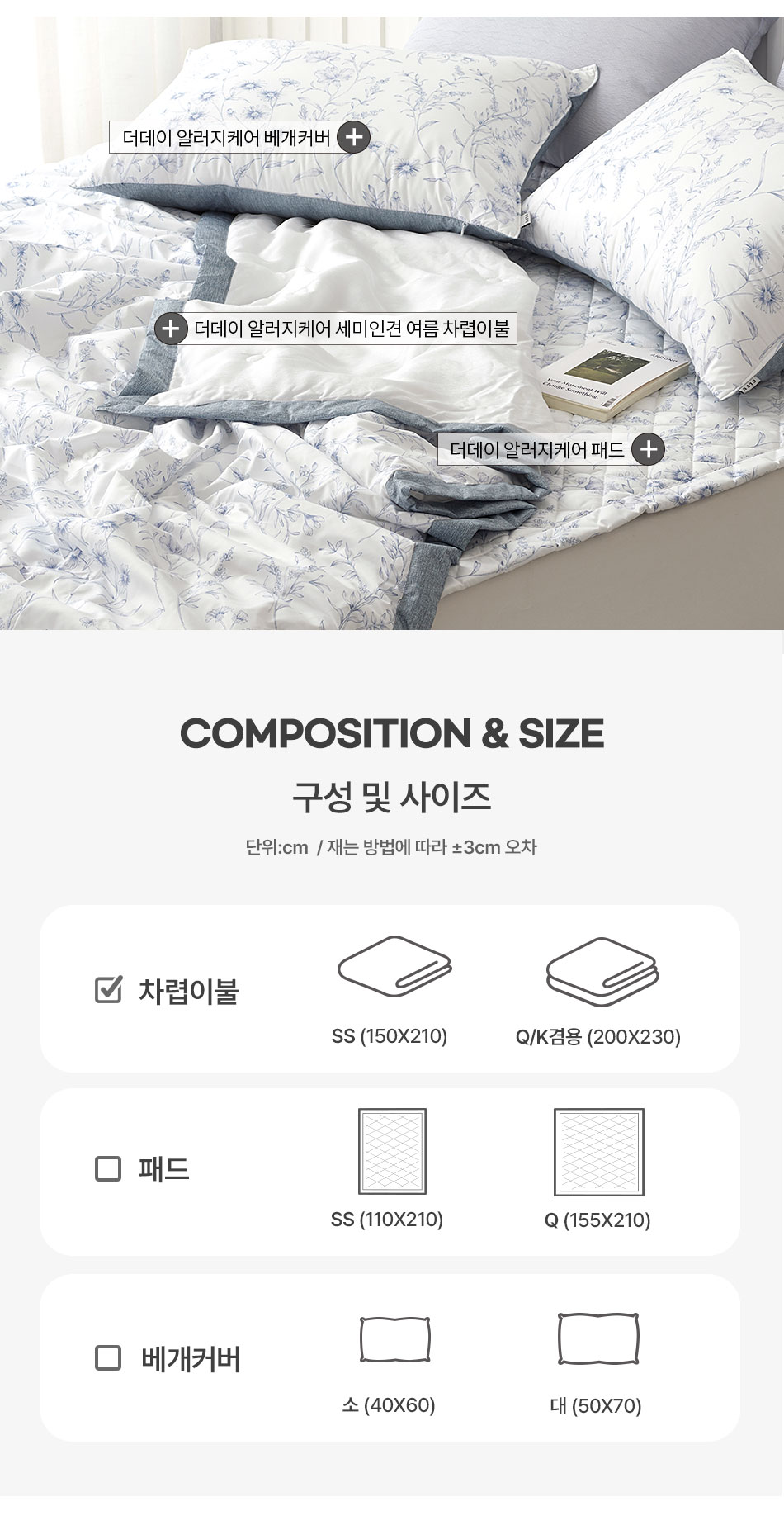 더데이 알러지케어 세미인견 차렵이불 SS/Q
