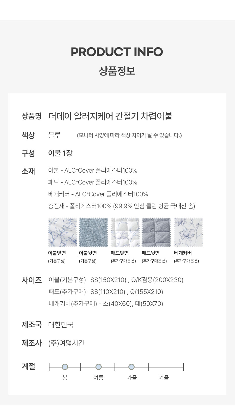 > 더데이 알러지케어 간절기 차렵이불 SS/Q