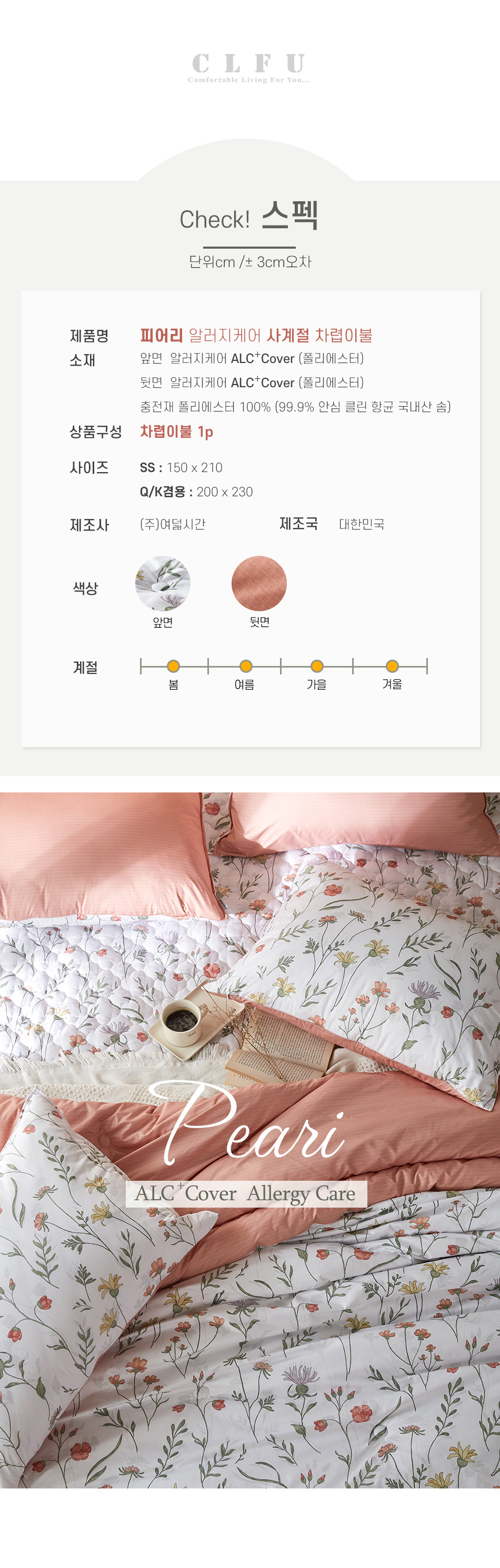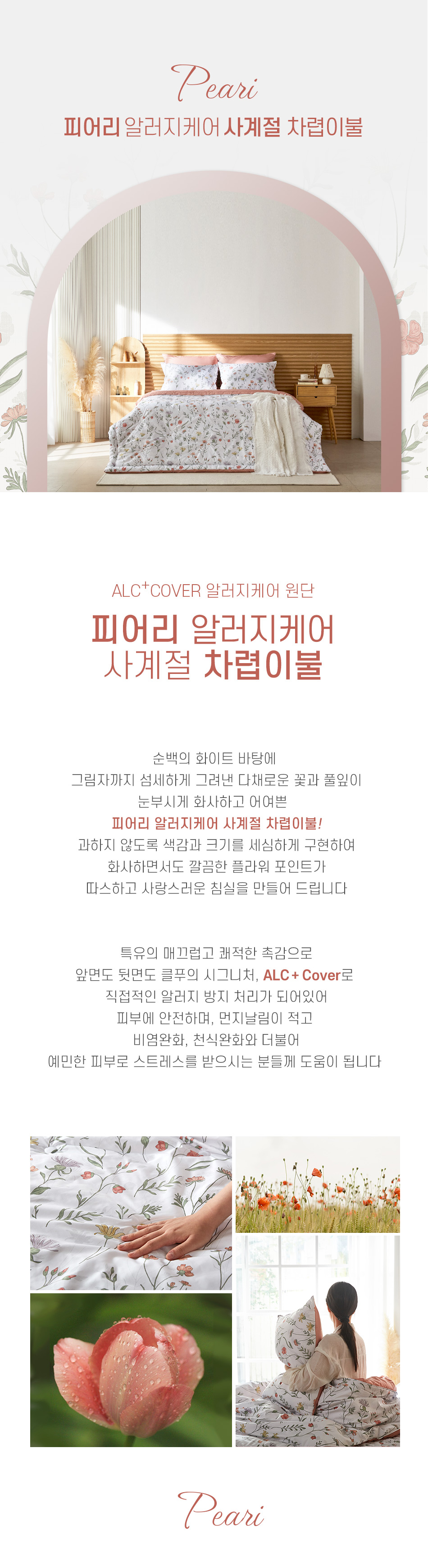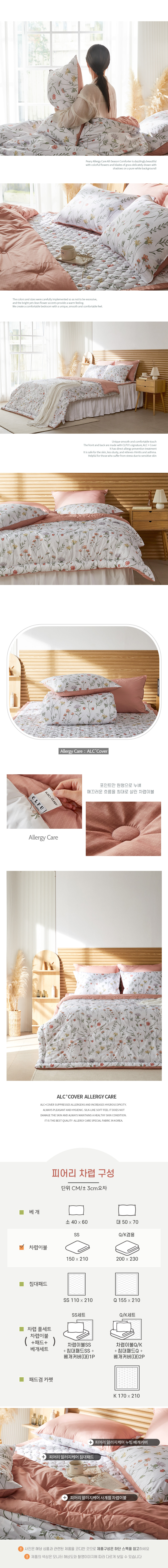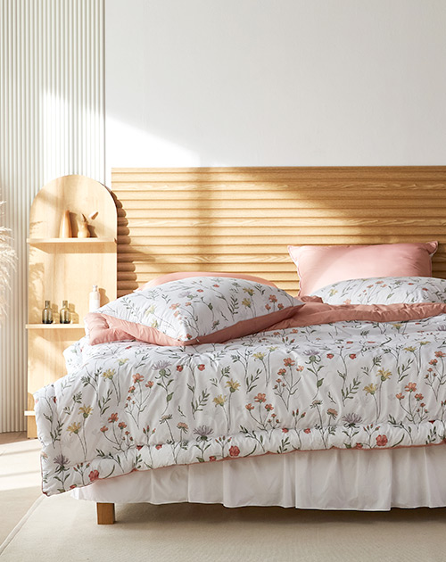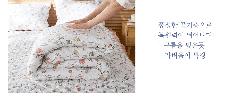 순백의 바탕에 그림자까지 섬세하게 살린 다채로운 꽃과 풀잎이 눈부시게 화사하고 어여쁜 폭신한 사계절 차렵이불 2가지 사이즈